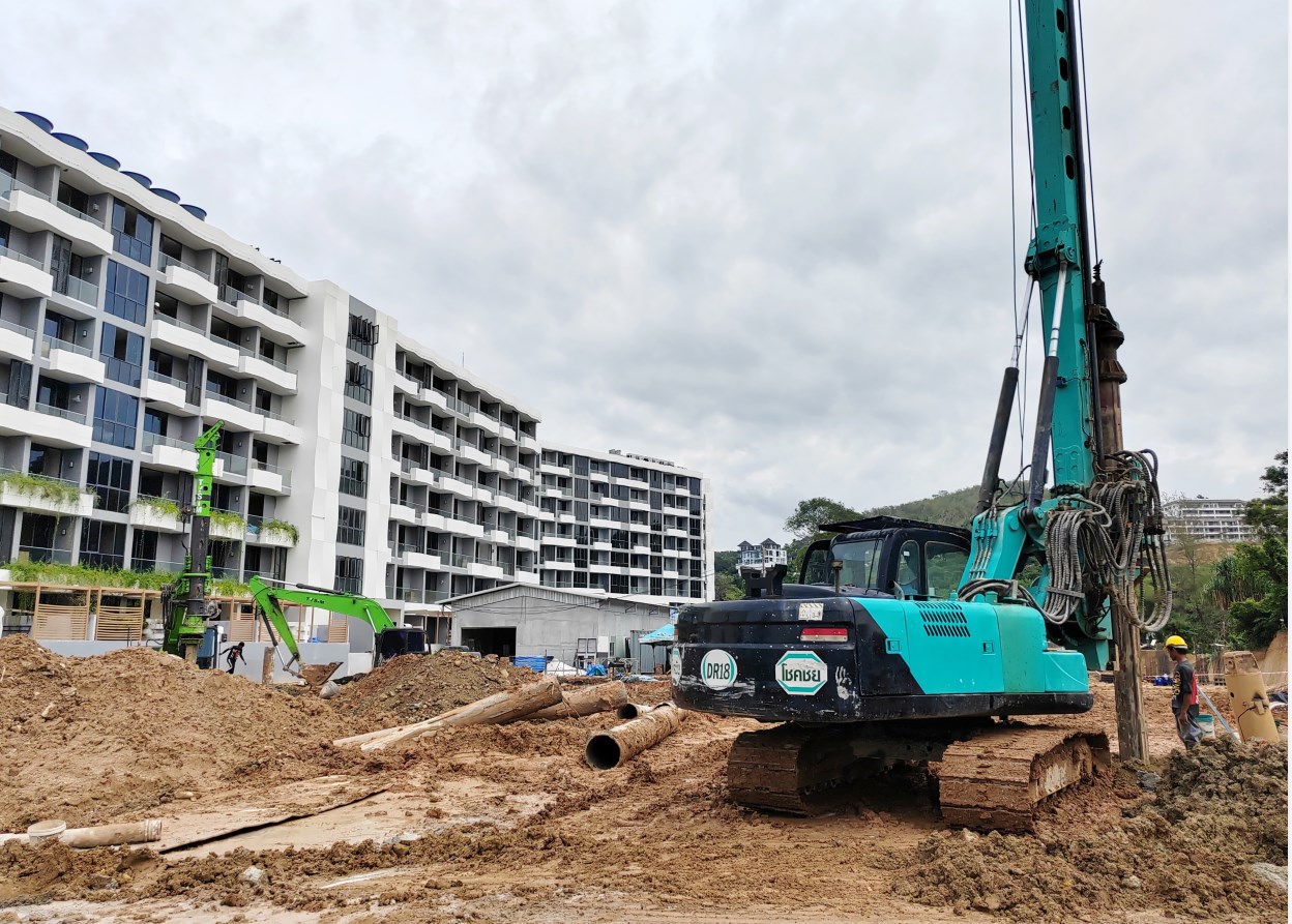 泰國普吉島知名度假及水療中心,泰信機械設備在該工地施工地層中風化巖層,泰信泰國公司工作人員定期隨訪現場查看設備運行情況,并給客戶處理遺留故障。客戶反饋,泰信機械的設備使用情況良好,還有泰信機械的工作人員定期對設備進行保養(yǎng)換裝噴漆,對此客戶豎起了大拇指。