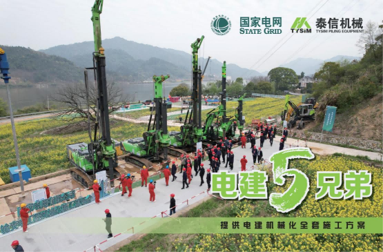 泰信機械自2013年成立以來,基于十多年樁工產(chǎn)品研發(fā)經(jīng)驗,技術團隊為國家電網(wǎng)全新定制開發(fā)了專用電建鉆機系列,致力于解決電網(wǎng)建設中的各種施工難題。針對電網(wǎng)建設中線塔基礎施工難度大、危險性高的問題,泰信機械通過五年的研發(fā)和試驗,先后為國家電網(wǎng)集團定制開發(fā)了五種高效、安全的電建鉆機,被業(yè)內(nèi)譽為“電建五兄弟”。這些設備的投用,使得原本需要人工團隊一個月完成的塔基項目,現(xiàn)在僅需三天就能完成,事實證明效率為人工的40倍。施工方反饋,“電建五兄弟”極大地提高了工效、縮短了工期、減少了人工投入,解決了施工人員下基坑作業(yè)危險性高的安全風險,將基礎施工三級風險壓降至四級風險,保障了人身安全。