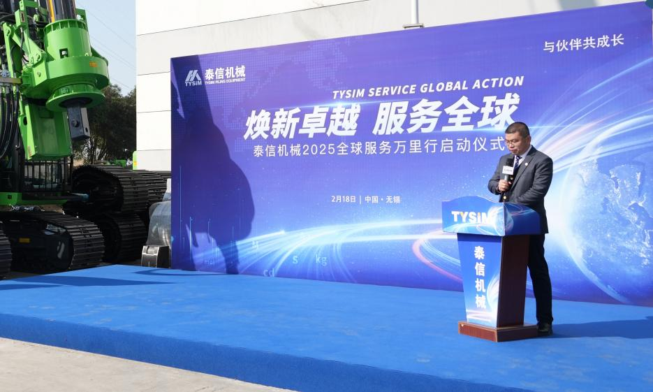 2025年2月18日,江蘇泰信機械股份有限公司(以下簡稱“泰信機械”)以“煥新卓越 服務(wù)全球”為主題的2025全球服務(wù)萬里行啟動儀式在江蘇無錫總部隆重舉行。公司副董事長潘俊吉、常務(wù)副總相振松、營銷中心總經(jīng)理肖華安、泰恒基礎(chǔ)常務(wù)副總段毅及海內(nèi)外員工代表齊聚現(xiàn)場,共同見證這一標(biāo)志性時刻?;顒油ㄟ^授旗儀式、集體宣誓等環(huán)節(jié),彰顯泰信機械以服務(wù)賦能全球客戶、深化品牌價值的堅定決心。