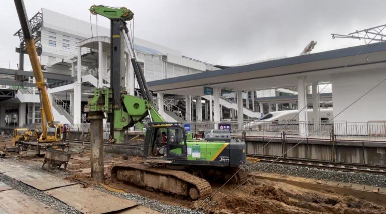 ES低凈空系列旋挖鉆機(jī)是泰信機(jī)械應(yīng)客戶的不同需求,針對在建筑物與大型隧道內(nèi)、橋梁與高壓線下等限高及狹小空間環(huán)境中施工的工況而定制的技術(shù)方案與機(jī)型,而城市快速路改造往往面臨嚴(yán)苛的施工空間限制及極高的安全施工要求。九洲大道項目施工安全要求極高的同時空間有限,對設(shè)備高度提出嚴(yán)苛要求。泰信機(jī)械KR300ES低凈空旋挖鉆機(jī)憑借其定制化9米低施工高度設(shè)計,在此類城市狹小空間作業(yè)中展現(xiàn)出不可替代的優(yōu)勢,成功解決了傳統(tǒng)大型設(shè)備施工傾倒的潛在危險性及需要較大施工工作面的痛點(diǎn)。